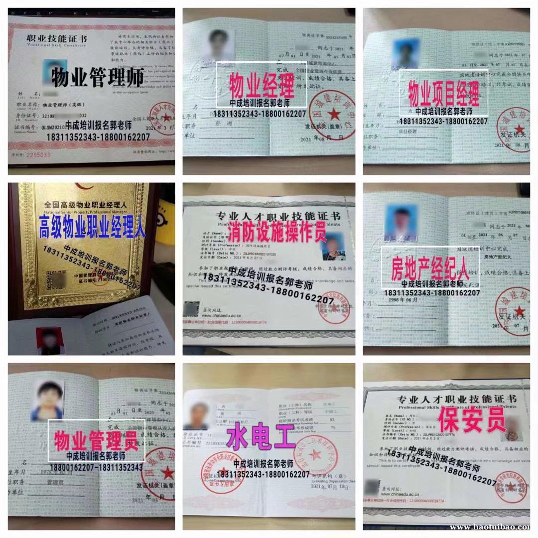 物业经理证上岗证1200,物业项目经理1400,物业管理员950,物业管理师高级1500,中级1400,初级1200 联系我时,请说是在好推宝看到的,谢谢!